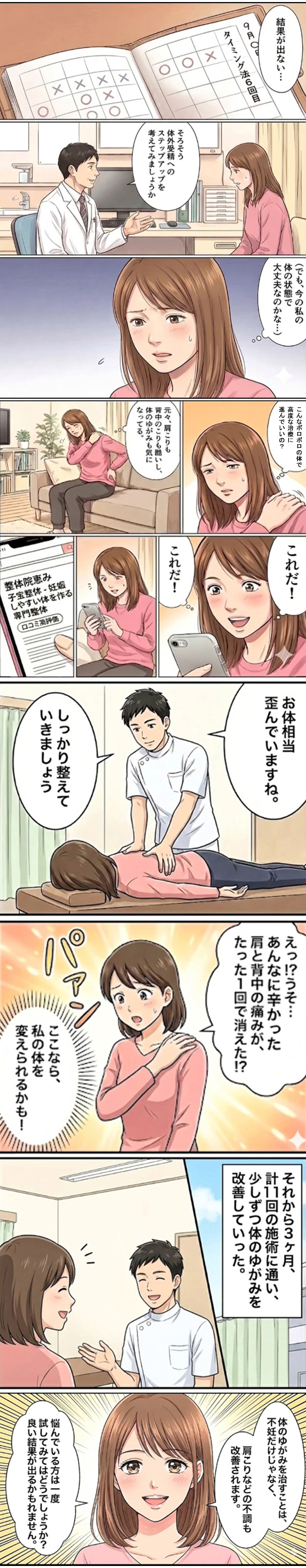 施術前後の姿勢の変化、体調の改善がすぐに体感できるので妊娠の希望が持てます